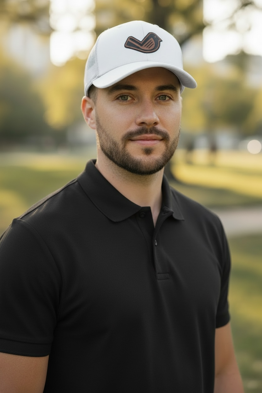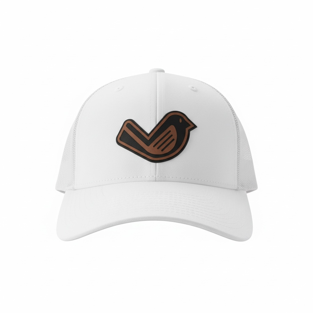 White Trucker SnapBack – Leather Patch Logo